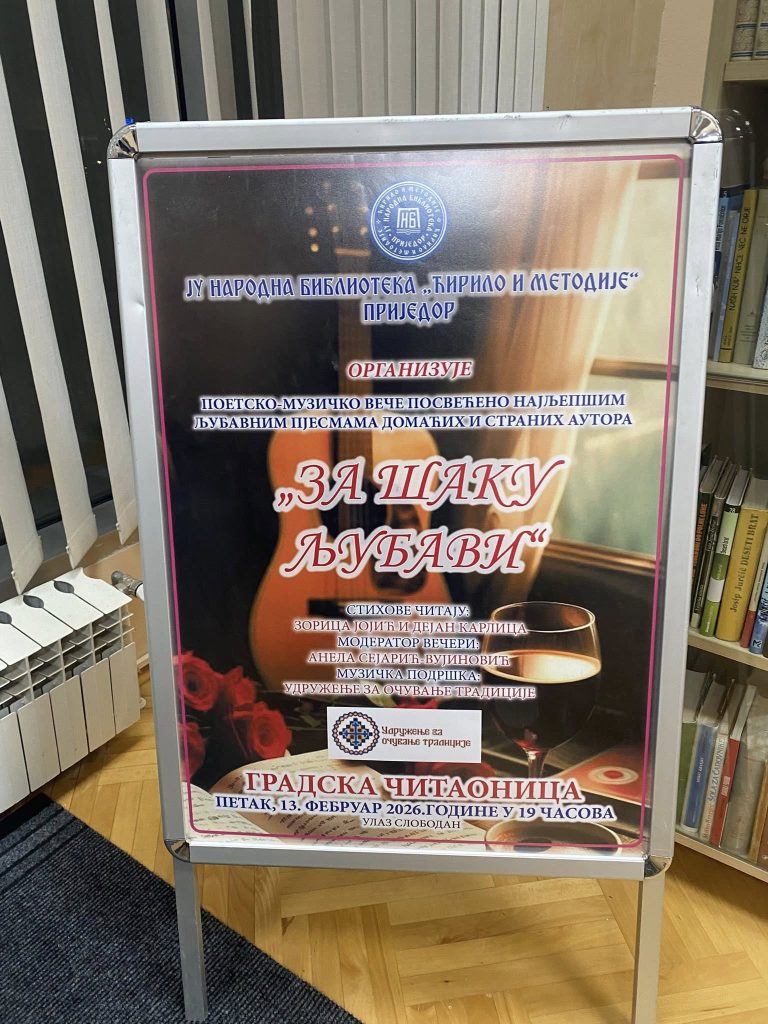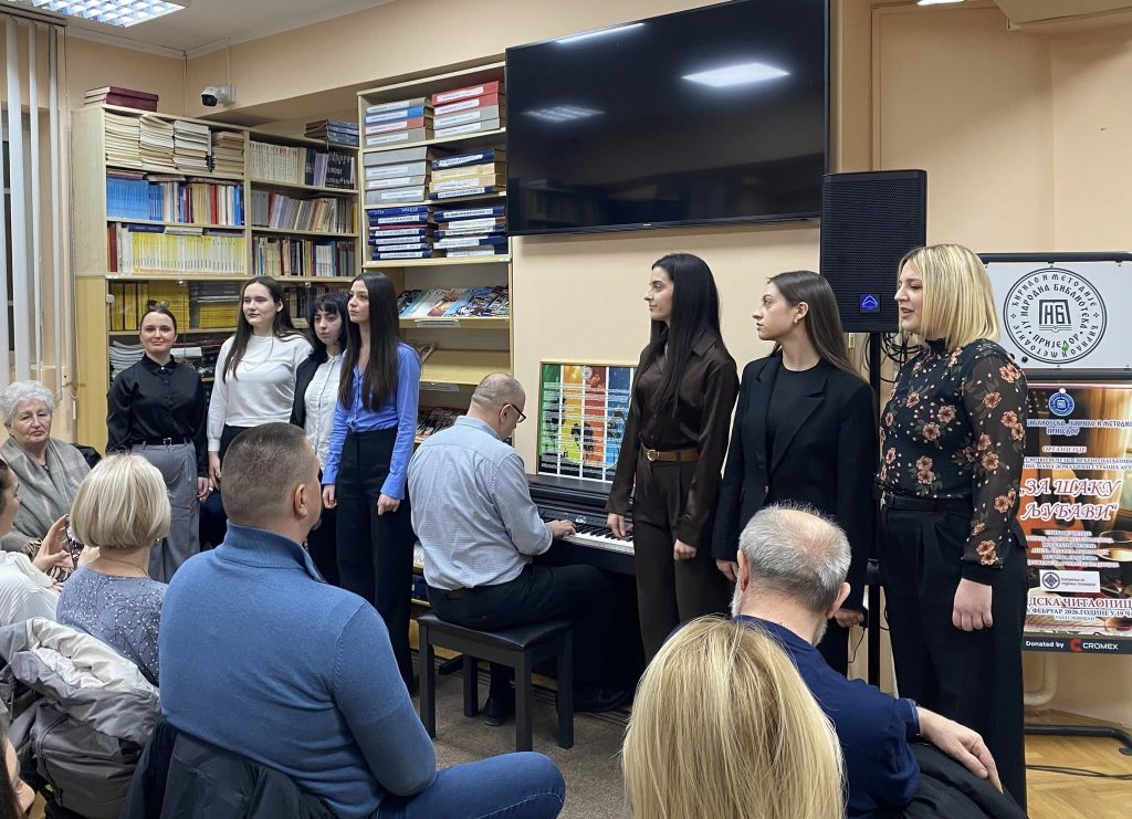 Наше гимназијалке, као чланице Женске пјевачке групе Удружења за очување традиције и наши професори, Дејан Карлица и Сњежана Хрваћанин, учествовали су у поетско-музичкој вечери „За шаку љубави“, одржаној у ЈУ Народној библиотеци „Ћирило и Методије“.